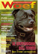 De Staffie is in Engeland de populairste terrier en dat zegt heel veel over zijn prachtige karakter, hij is de familiehond bij uitstek in arbeidersgezinnen. Ook in Nederland en Zuid-Afrika is hij populair, maar in België is hij nauwelijks bekend. Net als de Zwitserse honden heeft de Staffie zijn eigen brede halsbanden en lijnen met daarop koperen symbolische figuren: de Staffordknoop, de roos van Lancaster of York enz. Alles handwerk natuurlijk. Ik zei het al, rond de Staffie is een hele cultus gegroeid. Elke familie, particulier zowel als fokker, heeft de Staffie in huis, niet in de kennel. Wie een Staffie in zijn leven binnenhaalt, laadt een grote verantwoordelijkheid op zich, hij moet het feit aanvaarden dat deze hond graag met soortgenoten vecht en zodra een gevecht is begonnen, is het heel moeilijk te stoppen. Gevechten moeten dus worden voorkomen. De pup moet om te beginnen correct opgevoed en vooral gesocialisserd worden met tolerant reagerende volwassen honden. Dat vraagt tijd, aandacht en inzicht. Wie dat niet kan opbrengen, kiest beter een makkelijker ras. Net als elke terrierpup durft ook de Staffie te grommen, hij is eigenzinnig en hyperactief, het is dus kwestie deze zaken niet door de vingers te zien en jezelf als leider op te stellen. Zo jong mogelijk moet hij met vreemden en vooral allerlei honden in contact gebracht worden. Volwassen honden die normaal reageren op een pup en een goed geleide puppyklas zijn hiervoor ideaal. Slechte ervaringen honden die aanvallen enzo, moeten absoluut worden vermeden. De Staffie die nooit een reden of excuus gekregen heeft om een robbertje te vechten, is ideaal. Eenmaal de smaak te pakken…